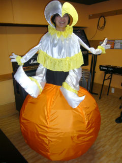 おどけたキャラクターで観客を楽しませます。